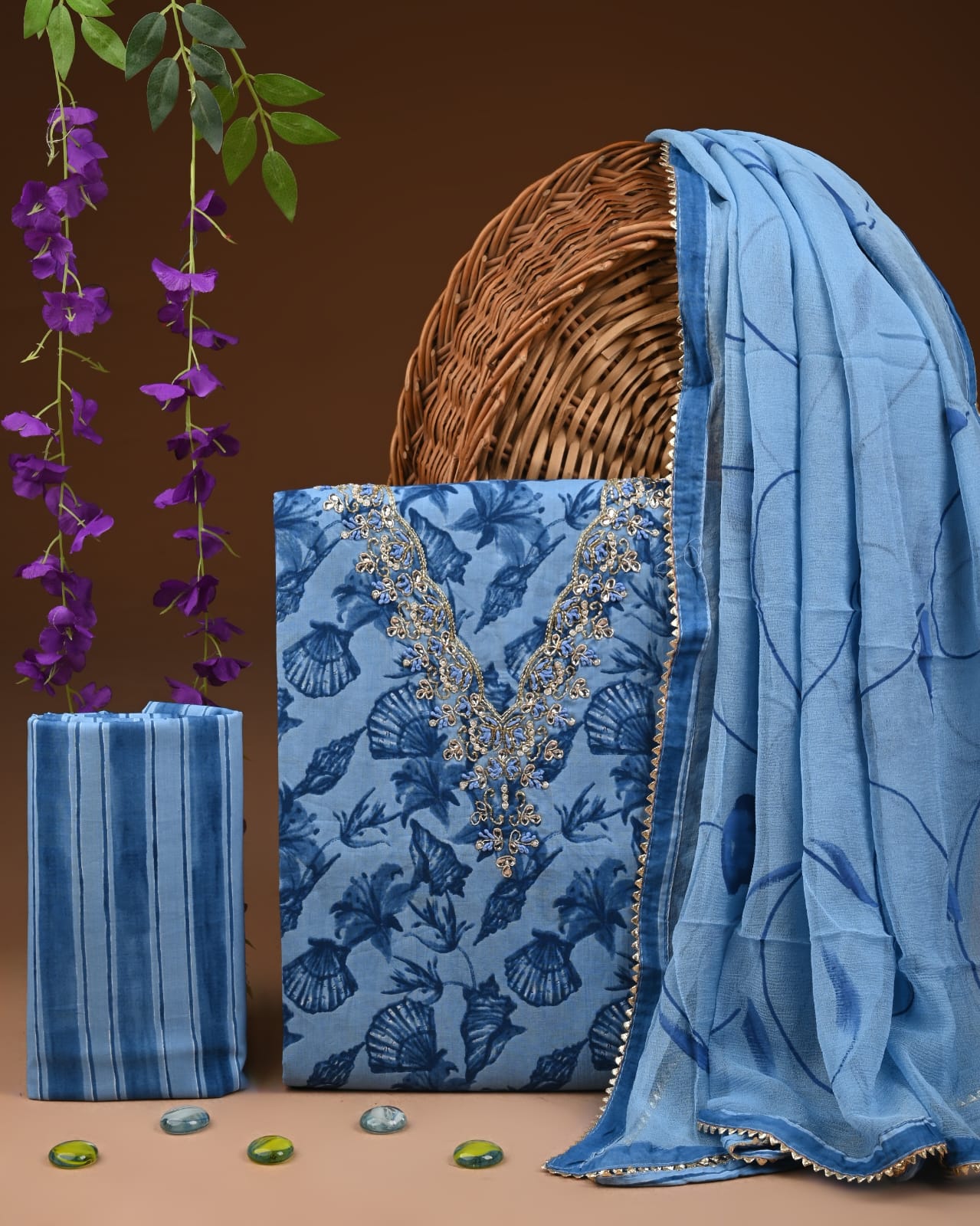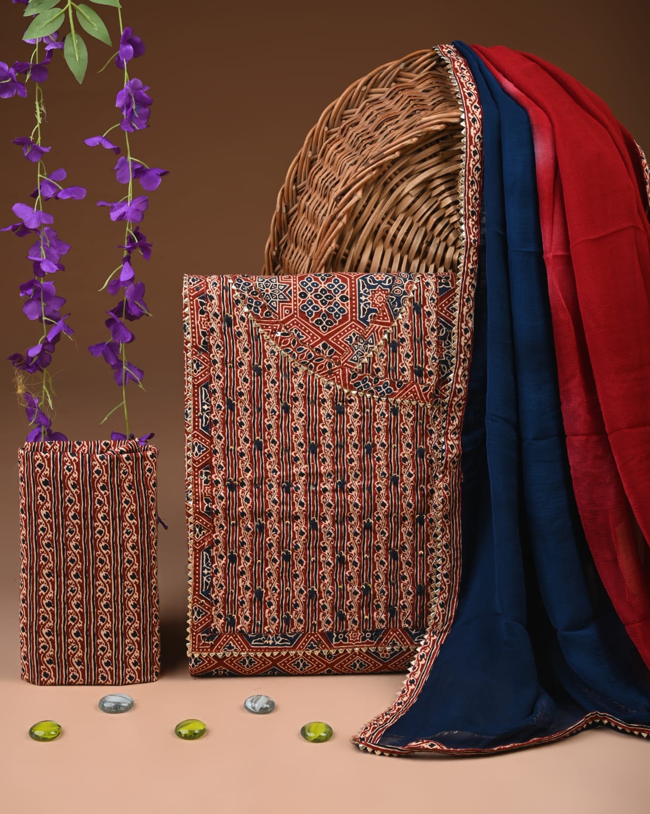 Traditional Bagru Print Cotton Suit with Chiffon Dupatta (BCTCOTCF25)