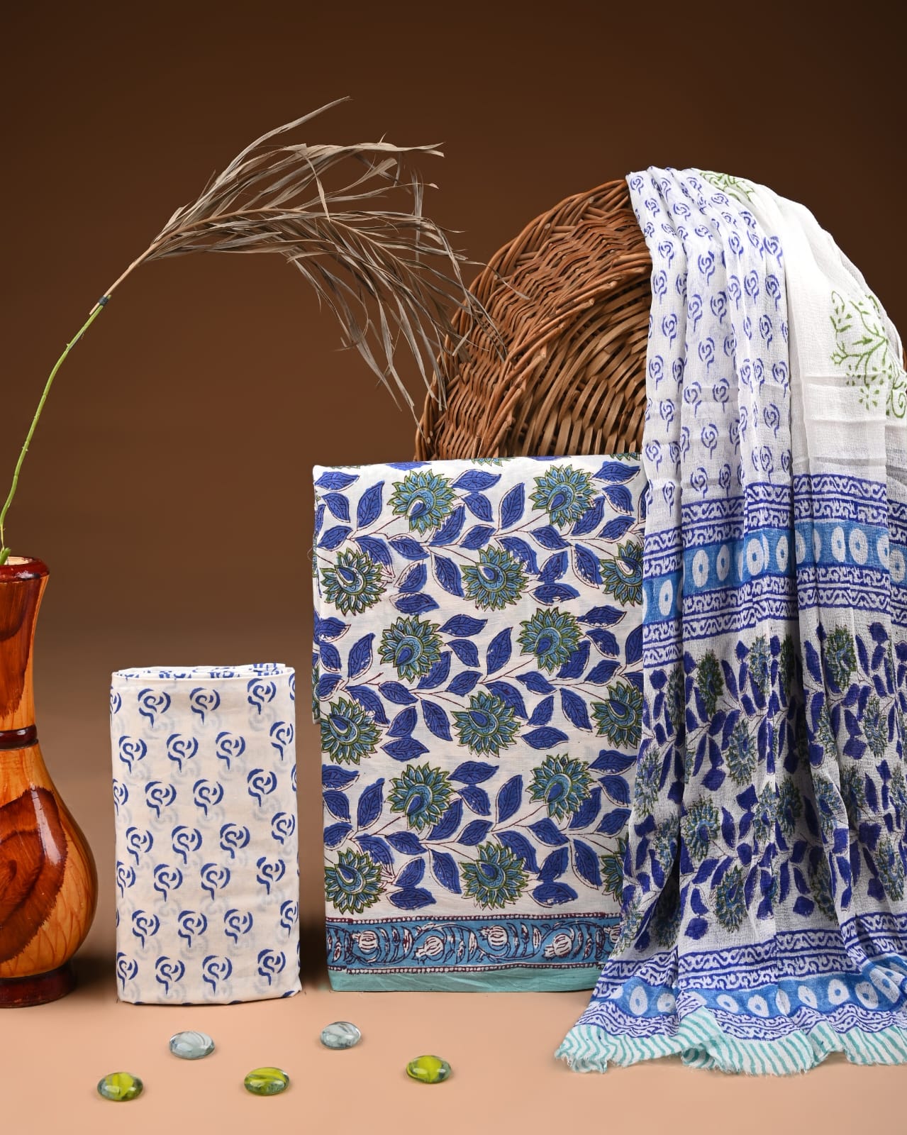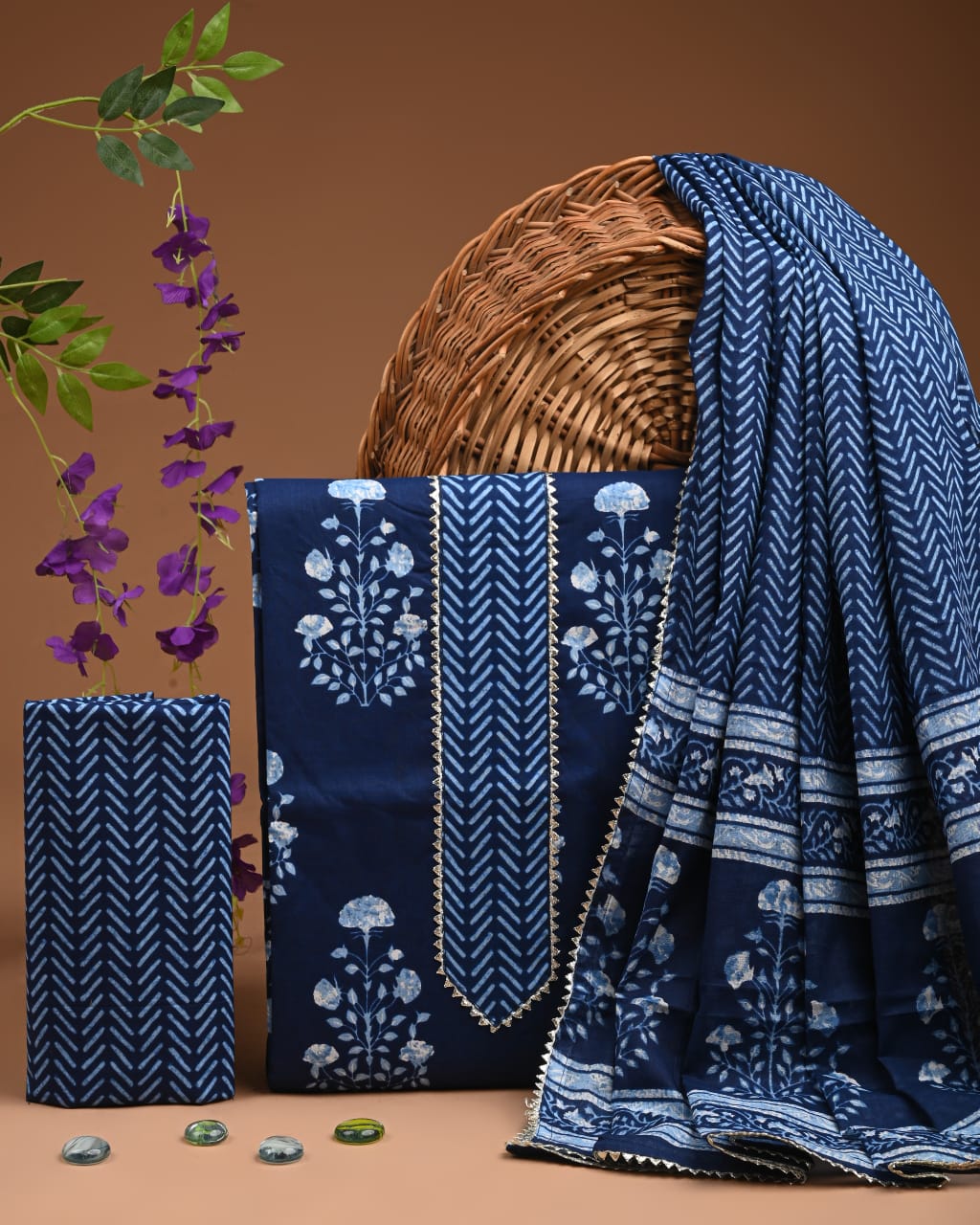 Traditional Bagru Print Cotton Suit with Chiffon Dupatta (BCTCOTCF25)
