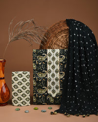 Immerse yourself in effortless elegance with this handcrafted cotton suit set, featuring a vibrant multicolor embroidered neckline highlighted with delicate zari gota patti work. Paired with a lightweight chiffon dupatta finished in zari lace, and a soft cotton bottom, this ensemble blends comfort with festive charm.