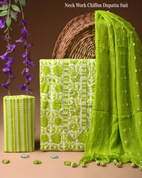 Premium Cotton Suit Set with Neck & Zari Chiffon Dupatta (BCTCOTCFG14)