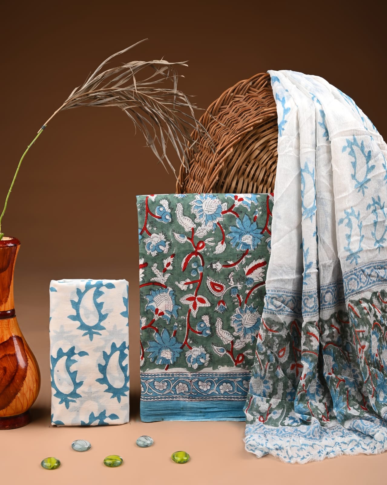Traditional Bagru Print Cotton Suit with Chiffon Dupatta