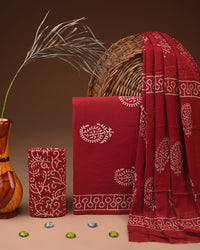 Traditional Bagru Print Cotton Suit with Chiffon Dupatta
